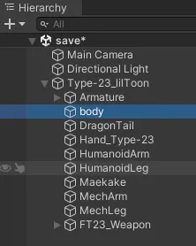 まず、なんでやるか理由は忘れましたが、Hierarchyのアバターを右クリックして、Prefab→Unpack Cpmpletelyをクリックして、プレハブを解体します。