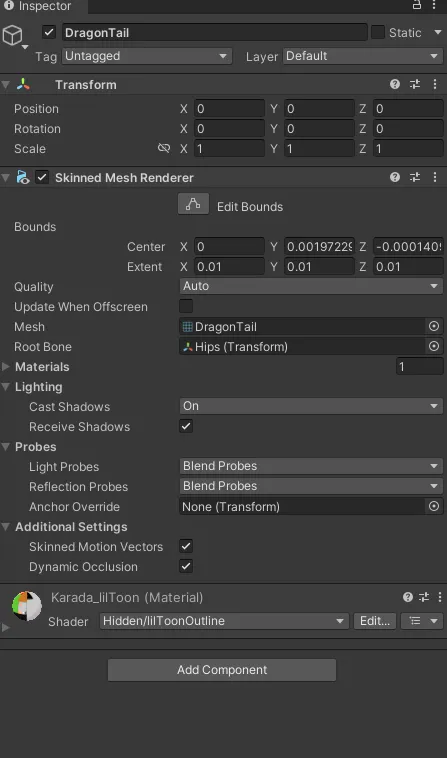 選択した後に、右側のInspectorタブを見るとこんな感じになってますが、