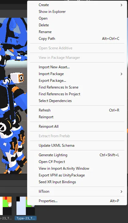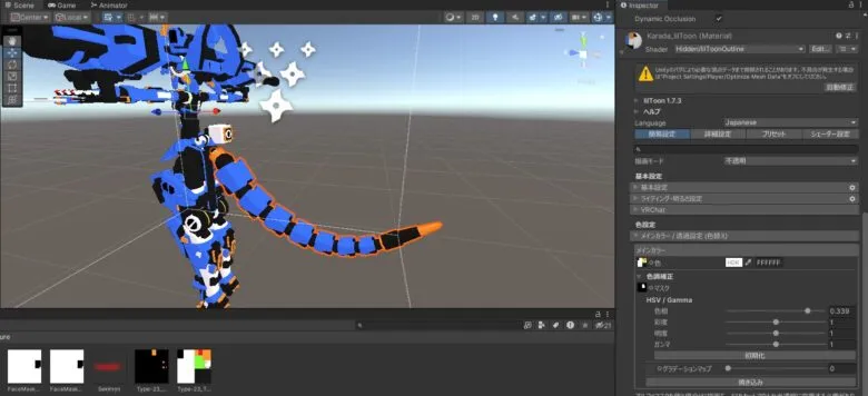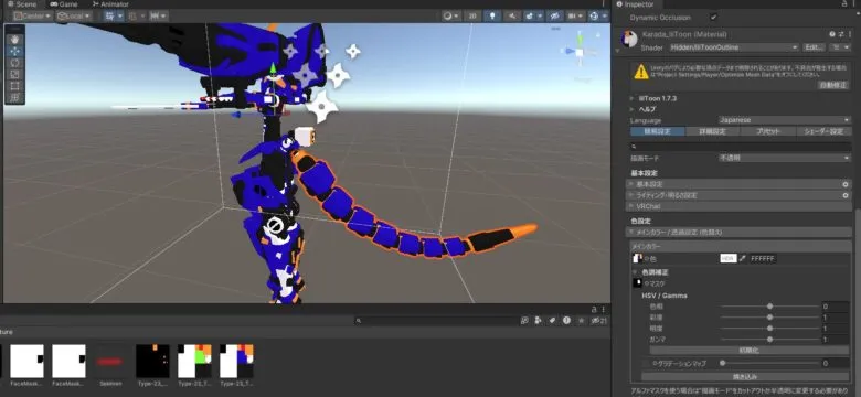 インポートしたらAssetsタブにlilToonが追加され、自動でテクスチャが表示されるはず。